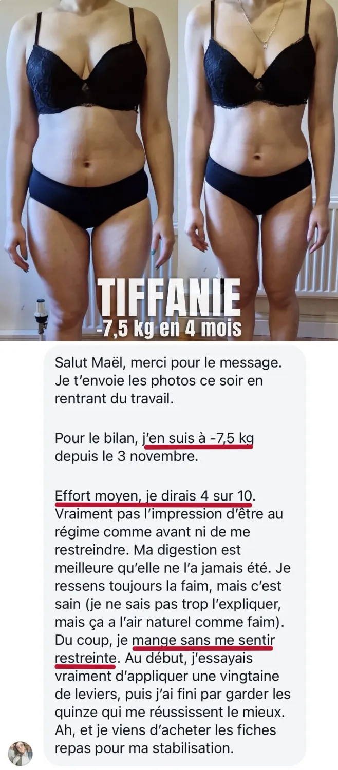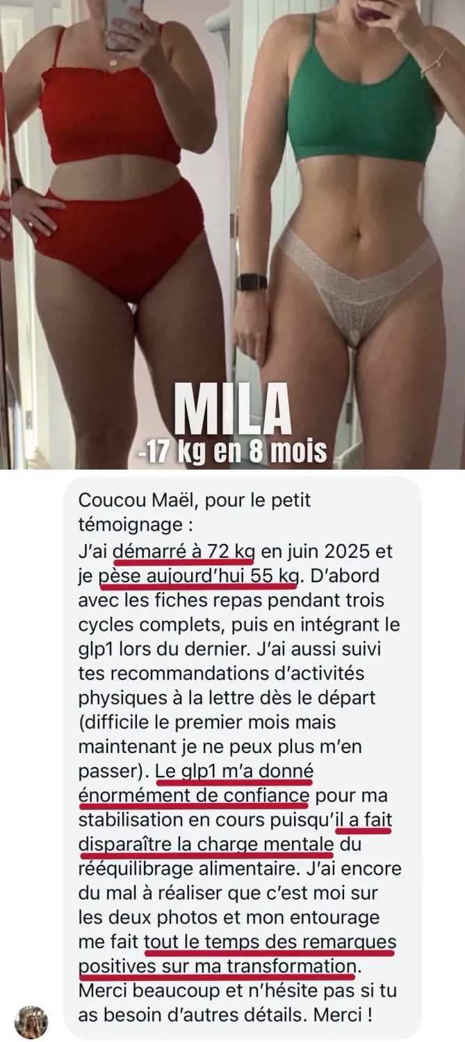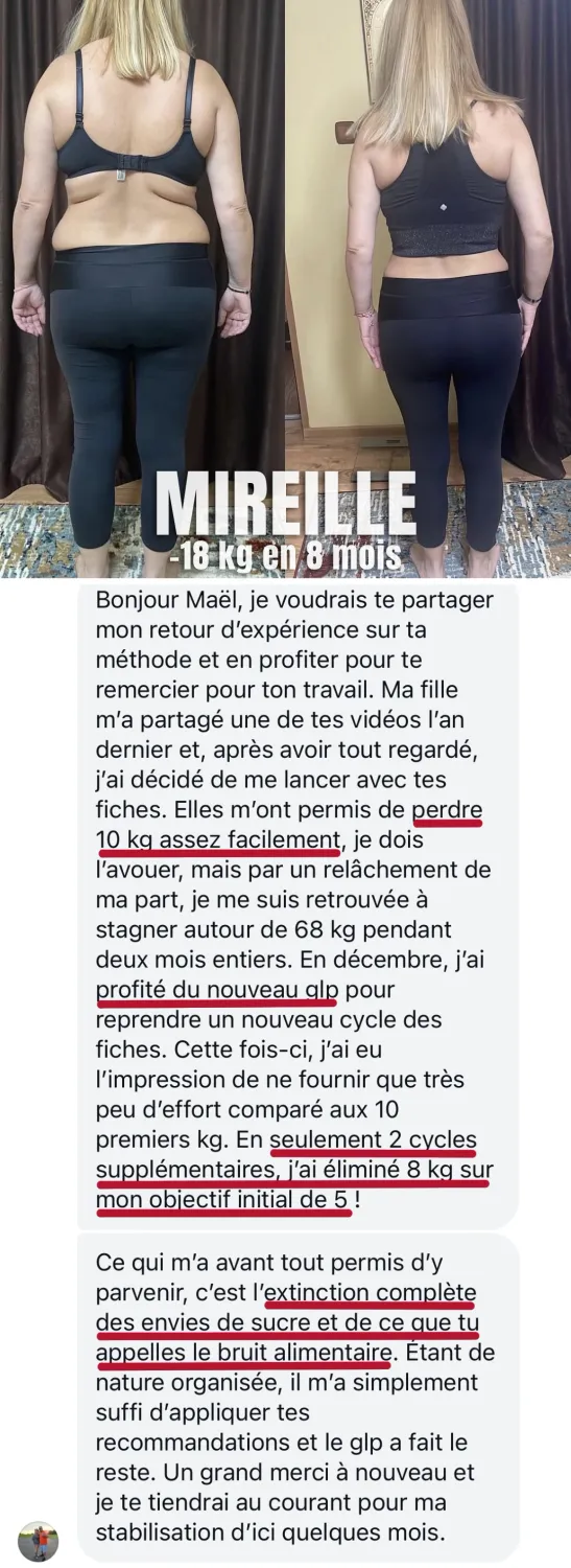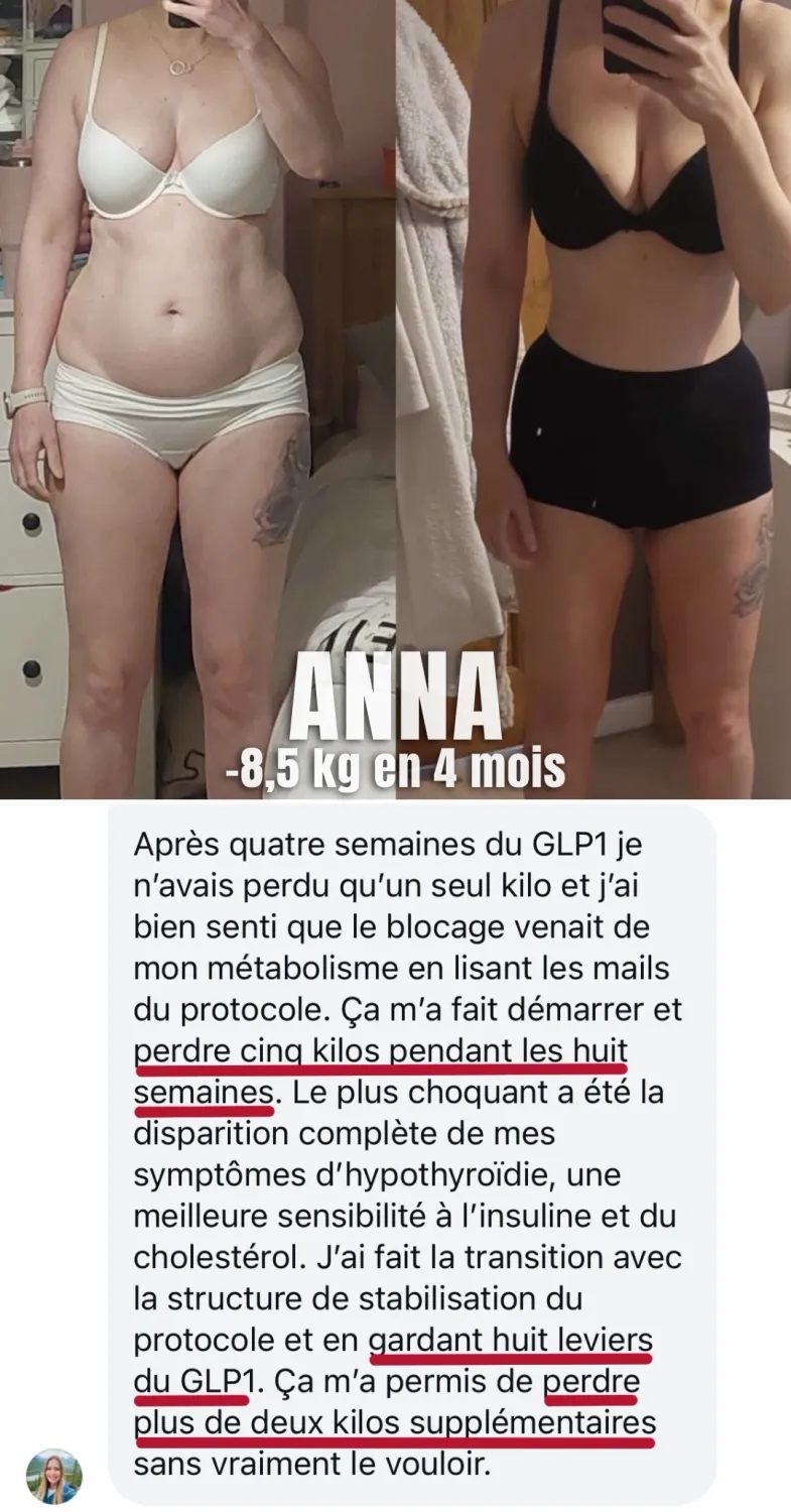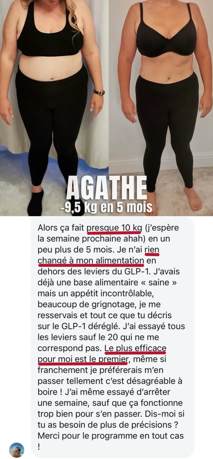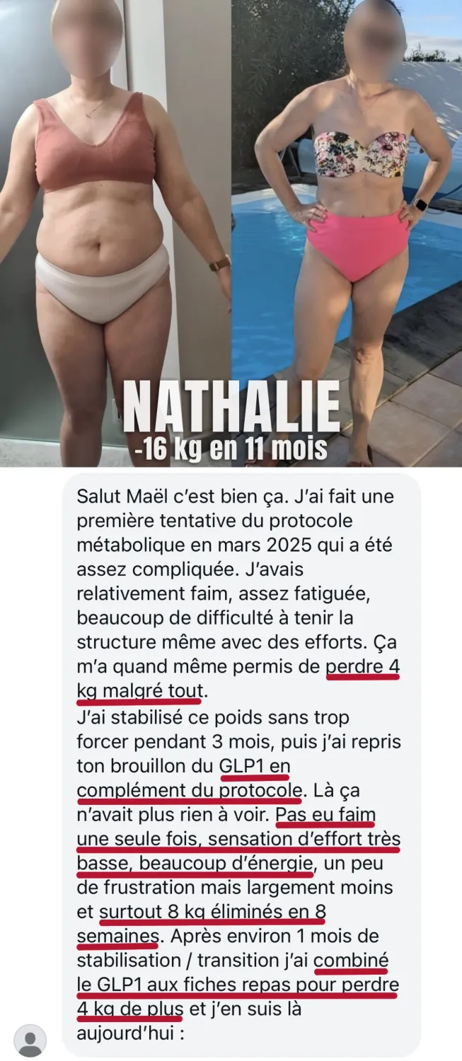 Pendant ces semaines, le corps réapprend à fonctionner avec des signaux alimentaires plus cohérents. L’appétit se calme, la gestion des portions devient plus intuitive et le déficit calorique devient beaucoup plus facile à tenir sans effort mental.